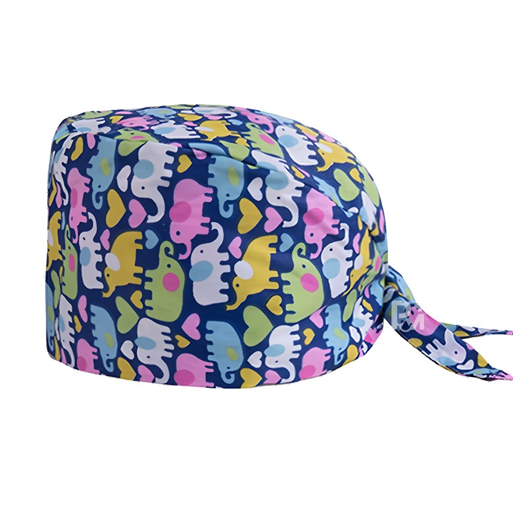 Elephant Print Tie Back Scrub Cap – Charming Unisex for Clinics