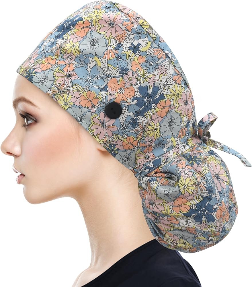 Floral-Patterned Ponytail Scrub Cap – Hair-Friendly Comfort for Healthcare Beauty Catering Cleaning Staff | Custom Professional GiftsFloral-Patterned Ponytail Scrub Cap – Hair-Friendly Comfort for Healthcare Beauty Catering Cleaning Staff | Custom Professional Gifts